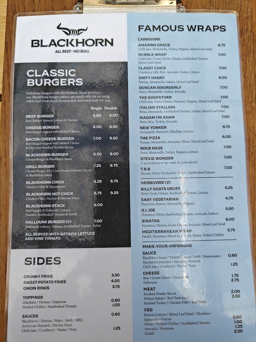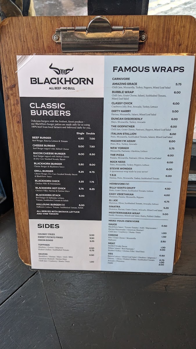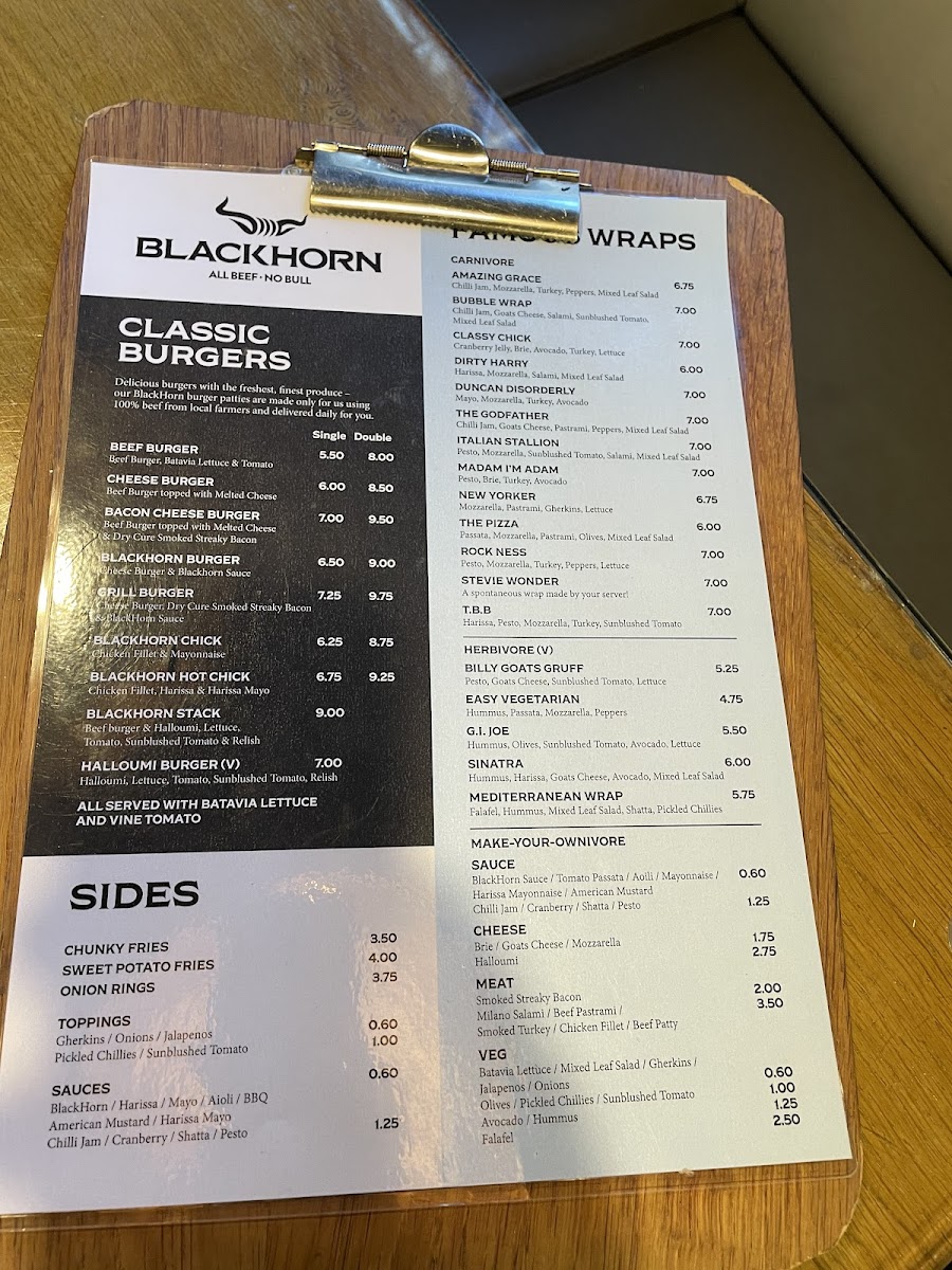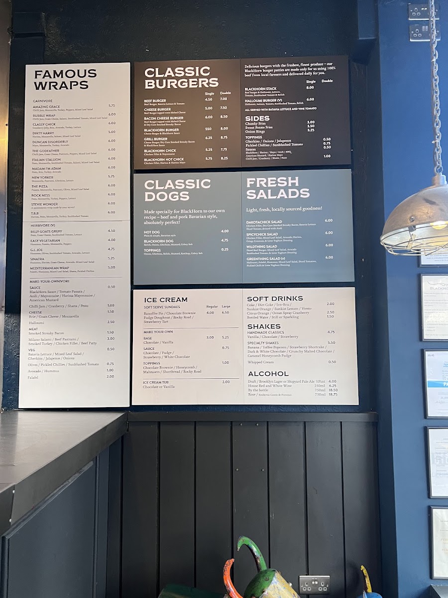 Introducing BlackHorn Burgers, a delightful culinary gem located at 10 Church St, St Andrews. This eatery prides itself on serving high-quality, freshly made burgers that leave a lasting impression on diners. BlackHorn offers an enticing menu featuring not only mouthwatering burgers but also a selection of fresh salads, such as the Dakotachick and Spicychick, each at just £6.75. Complement your meal with their robust beverages, including Bruce Jack wines and local beers like Budweiser Budvar.